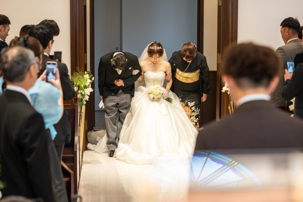 そして、新婦様はお兄様とおばあ様、新郎様は弟様にエスコートしていただき、お色直しのご中座です。